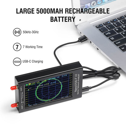 With a wide frequency range from 50 kHz to 3 GHz, the NanoVNA-F V2 is an essential tool for a broad spectrum of RF applications. Whether you're debugging duplexers, measuring S-parameters, analyzing SWR, or mapping phase response, it delivers reliable accuracy. Boasting an impressive dynamic range of 80 dB, it ensures precise readings for both professionals and hobbyists alike, making it a versatile must-have for anyone working in RF diagnostics and analysis.