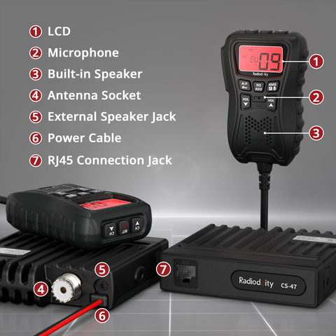 Radioddity CS-47 CB Radio has most of the features common to other CB radios, including an adjustable backlit seven-color handheld microphone, built-in microphone speaker, AM/FM modulation, VOX hands-free function, and active noise cancellation. However, it is cheaper than models with the same features, making it a very cost-effective one hander CB Radio for outdoor and off-road scenarios.